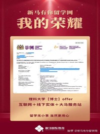 導(dǎo)師優(yōu)勢:馬來西亞研究生部資深顧問,善于挖掘申請人特點(diǎn),快速、準(zhǔn)確制定個性化留學(xué)申請方案;積累了大量的高端申請成功案例,深受學(xué)生和家長的信賴。